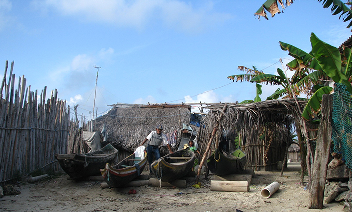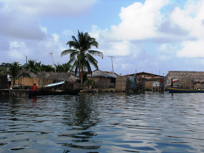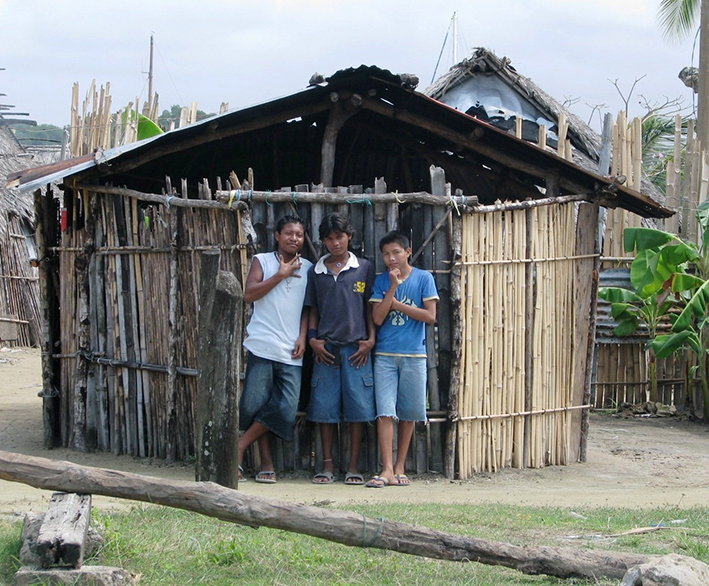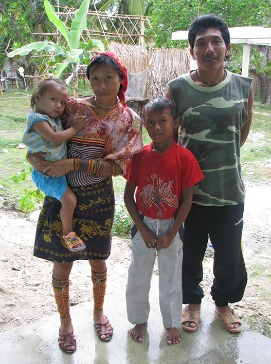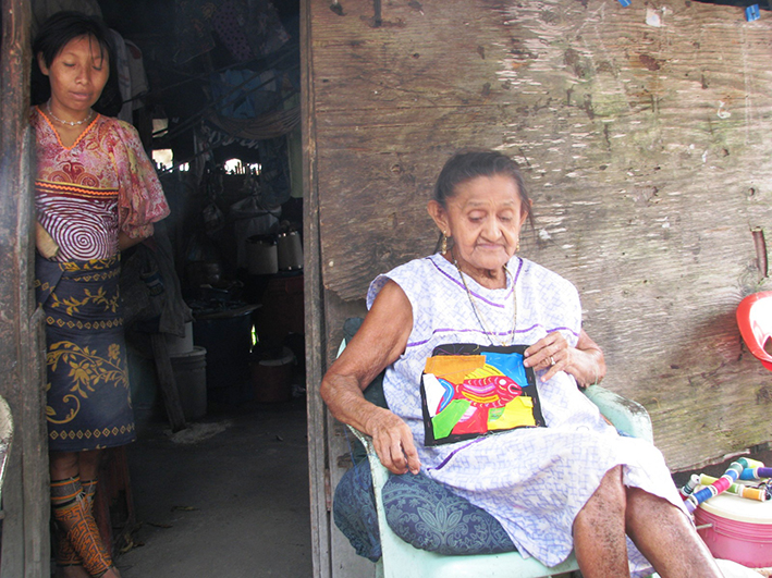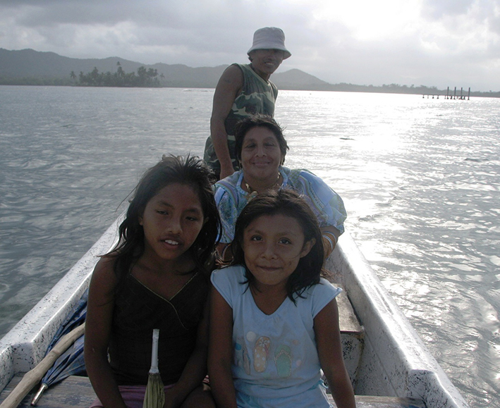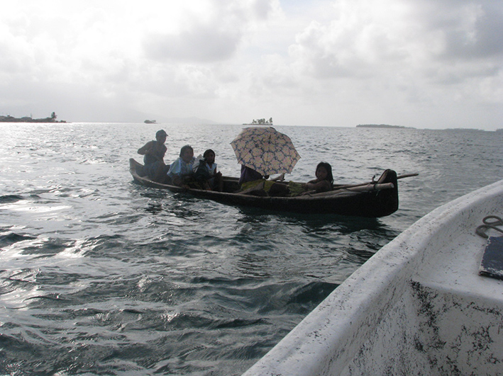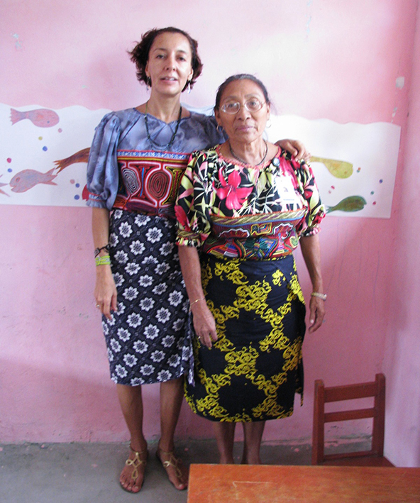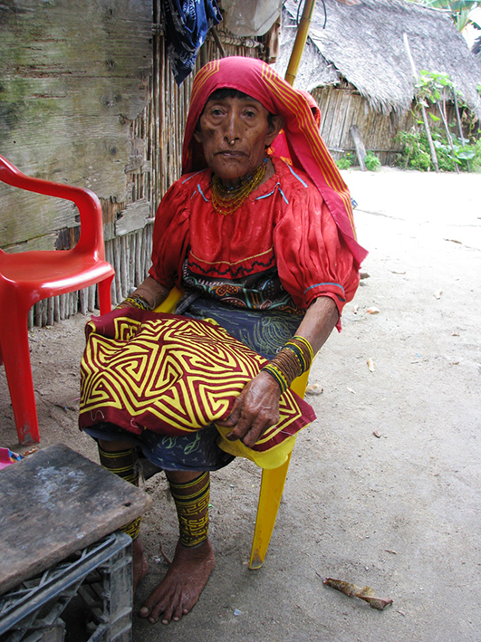 Afuera de este cálido recinto comienza de nuevo a llover, el viento cargado de salitre vuelve a traer múltiples aromas, reconozco el almizcle de la paja levantada, el dulce hechizo de la flor del azahar, el olor a árbol seco de la leña recién acomodada en el fuego, el de hogar con familia, el de las hojas de plátano al soasar, el de la nube de vaho de la tierra mojada que levantan las primeras gotas, el de aventura en el mar; vuelvo a permitir a estos aromas envolventes penetrar mi se y elevar mi alma, de pronto, una ráfaga insolente hace palidecer las velas con el alegre baile de su paso entre la gente y me permite descubrir la verdadera magia de la ceremonia, es mi sola presencia en este lugar, es poder estar en este recinto cautivador, que ahora se torna rojo y resplandeciente ante mi mirada, pues el encarnado encendido de los pañuelos sobre la cabeza de las señoras con dule mola* despertó mis sentidos y súbitamente todo relumbra con un destello aquí y muchos por allá, son los aretes y cadenas de oro, de las jóvenes y niñas, que brillan enmarcando sus bellísimos rostros delineados por sus elegantes pómulos, su lacio cabello negro y sus sesgados ojos de azabache tizón, espejos de la pureza que hay en su interior.”
